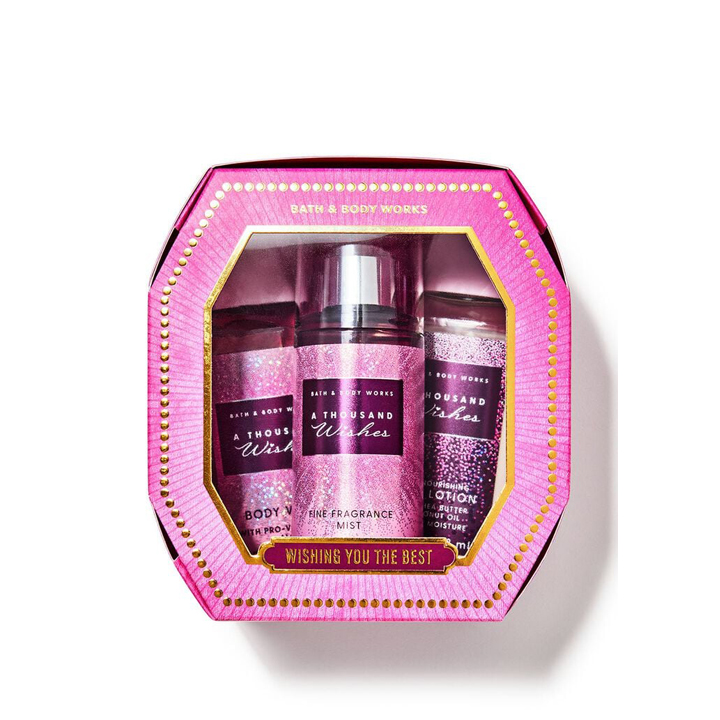 +++ Bộ Quà tặng xịt thơm body | sữa tắm | dưỡng thể mini A Thousand Wishes - Bath and Body Works dành cho các bạn muốn dưỡng mịn làn da body bóng mượt và có hương thơm thoang thoảng như mùi da thịt tự nhiên nhé