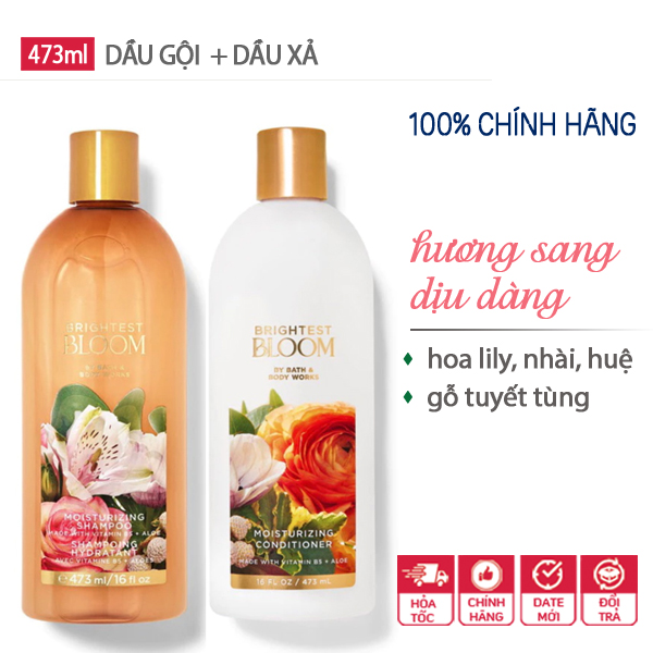 Bộ Dầu Gội & Xả hương BRIGHTEST BLOOM Shampoo & Conditioner Bath And Body Works vừa mới ra đời đã nhận được nhiều sự ủng hộ nồng nhiệt của các tín đồ yêu thích hương thơm. Với thành phần chứa nhiều dưỡng chất vitamin E, vitamin B5, nha đam giúp bạn có mái tóc óng mượt, mềm mại và lại thoang thoảng đủ cung bậc hương thơm từ sang trọng-tinh tế, đáng yêu-dễ thương đến lãng mạn & quyến rũ.