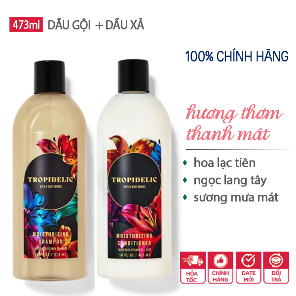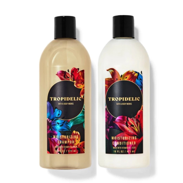 Bộ Dầu Gội & Xả hương TROPIDELIC Shampoo & Conditioner Bath And Body Works vừa mới ra đời đã nhận được nhiều sự ủng hộ nồng nhiệt của các tín đồ yêu thích hương thơm. Với thành phần chứa nhiều dưỡng chất vitamin E, vitamin B5, nha đam giúp bạn có mái tóc óng mượt, mềm mại và lại thoang thoảng đủ cung bậc hương thơm từ sang trọng-tinh tế, đáng yêu-dễ thương đến lãng mạn & quyến rũ.