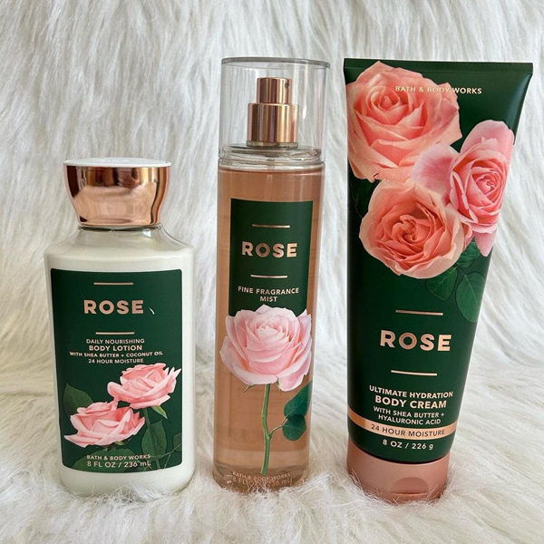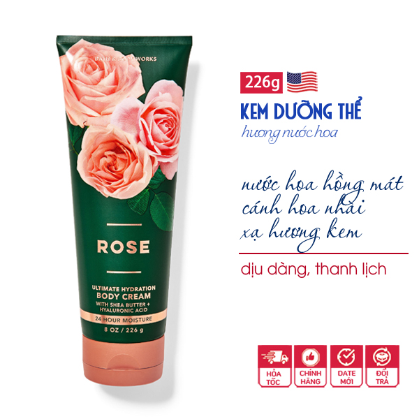 **Mùi hương: Kem dưỡng thể Rose Bath & Body Works mùi thơm hiện đại và tinh tế, không quá ngọt. Hương hoa hồng nổi bật không lẫn với nhiều mùi khác dù có điểm thêm một ít hương lài & xạ hương giúp tăng thêm độ nồng nàn, ấm áp.