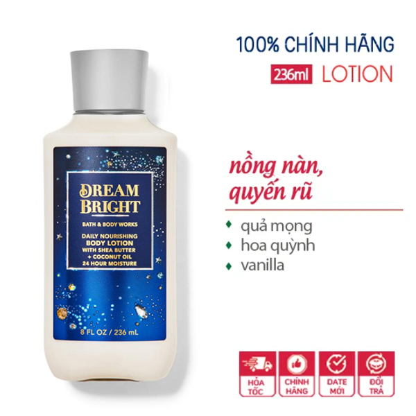 Sữa dưỡng thể hương nước hoa Dream Bright - Bath & Body Works . Mùi hương sang sịn, đằm thắm để lại dấu ấn khó quên, thu hút, sexy, style lady khá trưởng thành nhưng không quá dừ, vẫn giữ được nét trẻ trung và tươi mới.