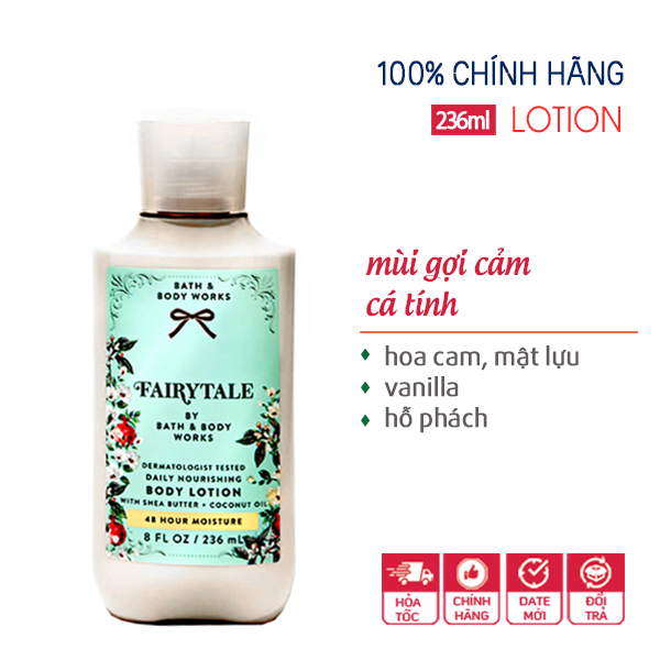 *CÔNG DỤNG: Sữa dưỡng thể hương nước hoa Fairytale - Bath & Body Works - Bath and Body Works thẩm thấu rất nhanh, không hề rít dính, làm mềm da, mịn da, nâng tông da sau 1 thời gian sử dụng.-