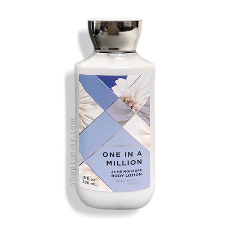 Dưỡng thể One in a Million lotion - Bath and Body Works lưu hương thơm rất lâu trên da, thẩm thấu rất nhanh, làm mềm da, mịn da mà không rít dính, thành phần chủ đạo bơ hạt mỡ, tinh dầu jojoba, vitamin E nuôi dưỡng và bảo vệ da, cung cấp siêu dưỡng chất và độ ẩm cho làn da suốt cả ngày.