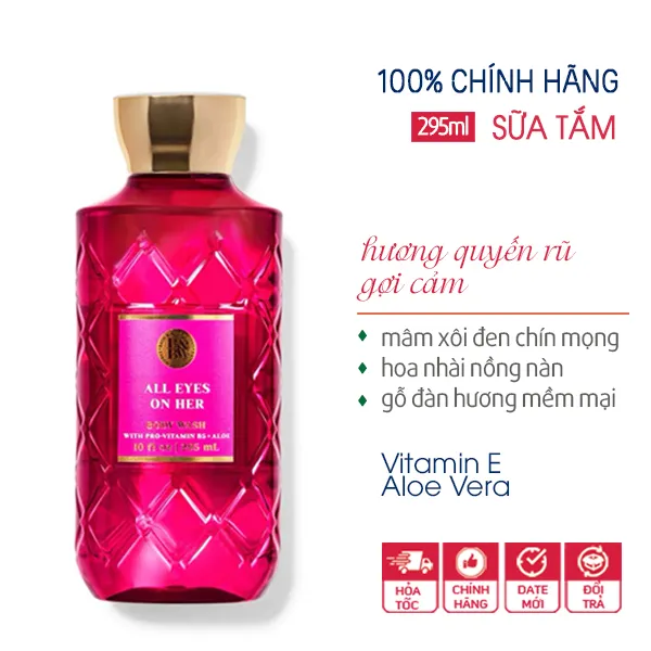 Sữa tắm All Eyes On Her dưỡng ẩm lưu hương của thương hiệu Bath and Body Works đến từ Mỹ. Đây là thương hiệu có uy tín lâu năm trong ngành công nghiệp chăm sóc cơ thể, nguyên liệu chủ yếu từ thiên nhiên, không gây kích ứng cho da.