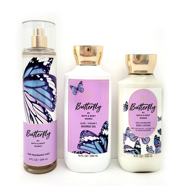 Sữa tắm dưỡng ẩm vitamin E & lô hội hương Butterfly của thương hiệu Bath and Body Works đến từ Mỹ. Đây là thương hiệu có uy tín lâu năm trong ngành công nghiệp chăm sóc cơ thể, nguyên liệu chủ yếu từ thiên nhiên, không gây kích ứng cho da.