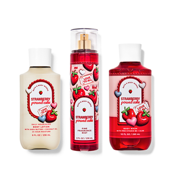 Strawberry Pound Cake cũng là con cưng của nhà Bath And Body Works với nhiều mẫu mã được sản xuất thay đổi theo từng mùa, từng bộ sưu tập.