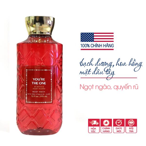 Sữa tắm You're the One - Bath & Body Works làm sạch da, cung cấp thêm độ ẩm và giữ được hương thơm lâu hơn. Sữa tắm BBW không lưu mùi đậm đặc như khi dùng nước hoa, mà sẽ chỉ thoang thoảng trên da, ẩn ẩn hiện hiện, lưu giữ hương như chính mùi cơ thể vậy, tăng thêm sức quyến rũ cho cơ thể.