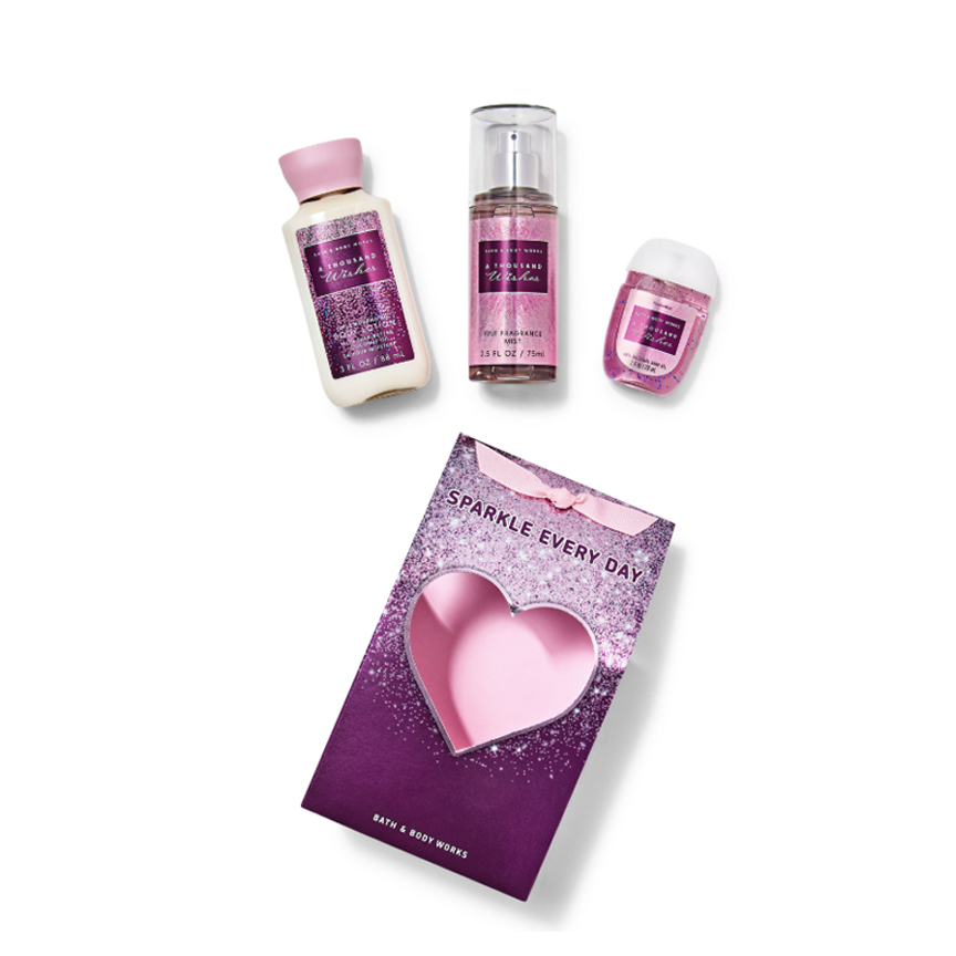 Bộ Quà Tặng Xịt Thơm Body Mist + Dưỡng Thể + Gel rửa tay khô mini travel size hương A Thousand WIshes - Bath And Body Works thuộc hương sắc nồng nàn nhưng tươi trẻ.