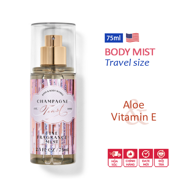 Xịt thơm toàn thân Champagne Toast | travel size | 75ml | bath & body works 2024