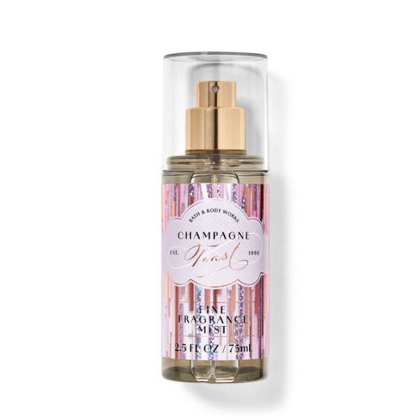 Xịt thơm toàn thân mini Champagne Toast du lịch travel size - Bath & Body Works thuộc hương sắc nồng ấm và cuồng nhiệt với hương thơm từ rịu champagne, chambord nho đen, mật hoa và một xíu xạ hương. Tone trái cây ngọt nhẹ, nồng ấm, dễ say, nhẹ nhàng, nhưng lãng mạn và sang trọng.