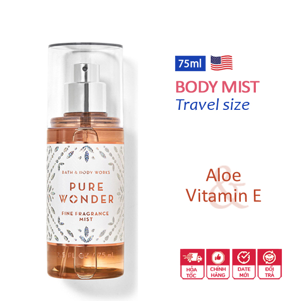 Xịt thơm toàn thân mini Pure Wonder travel size - Bath & Body Works là mùi thiên về hoa, nhưng nhẹ và thanh, không quá nồng hay quá ngọt, rất dễ chịu. Hương thơm Pure Wonder lưu lại trên da mùi phấn hoa phảng phất, ngọt nhẹ, trầm ấm. Mùi hương có tí trưởng thành sẽ thích hợp các bạn đã đi làm, có thể sử dùng quanh năm không kén thời tiết.