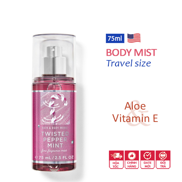 Xịt thơm toàn thân Twisted Pepper Mint travel size | 75ml | Bath & Body Works