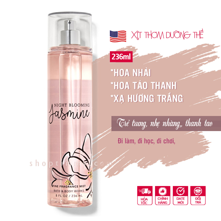Xịt thơm body Night Blooming Jasmine dưỡng ẩm lưu hương cơ thể - Bath and Body Works