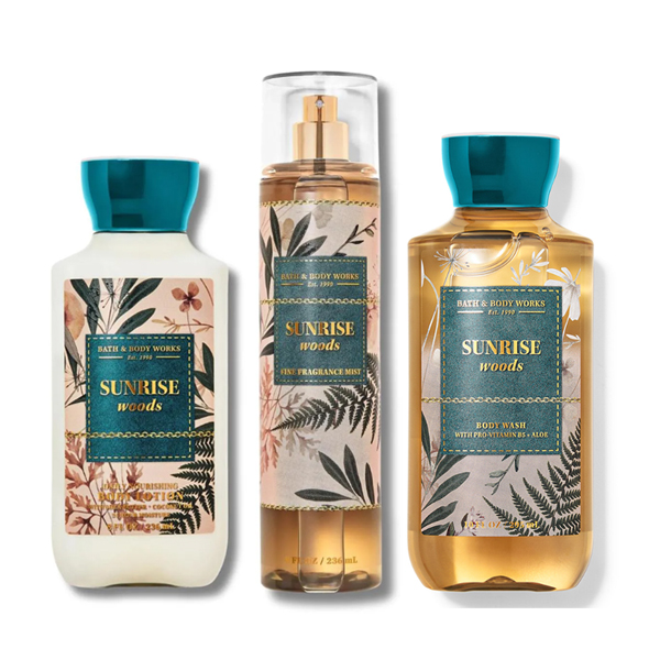 Bộ Sữa dưỡng | Xịt thơm body | Sữa tắm Sunrise Woods - Bath & Body Works | 2024