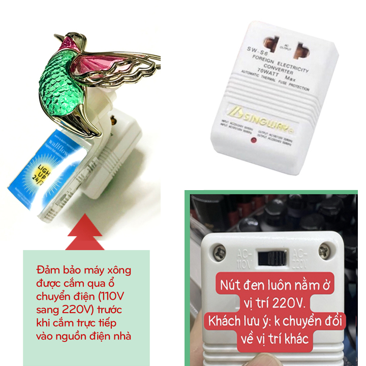 Máy khuếch tán tinh dầu xông thơm phòng chính hãng Bath & Body Works của Mỹ sử dụng dòng điện 110V. Do đó, cần dụng cụ/ thiết bị chuyển nguồn điện từ 110V sang 220V.