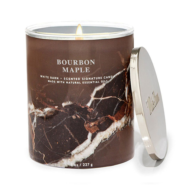 Nến Sáp Thơm Phòng Bourbon Maple cao cấp - Bath & Body Works hương thơm gây nghiện, hấp dẫn từ rượu bourbon ủ trong thùng, hổ phách có đường và gỗ phong.