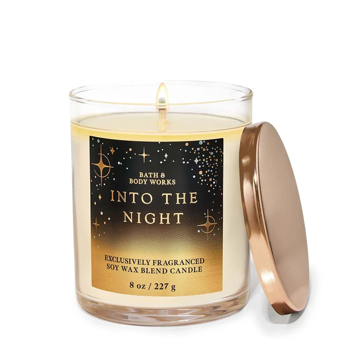 Nến Sáp Thơm Phòng Into The Night cao cấp - Bath & Body Works hương thơm ngọt sang, quyến rũ từ quả mâm xôi đen, tinh thể hổ phách, cánh hoa hồng mượt, hoắc hương kem và xạ hương mocha.