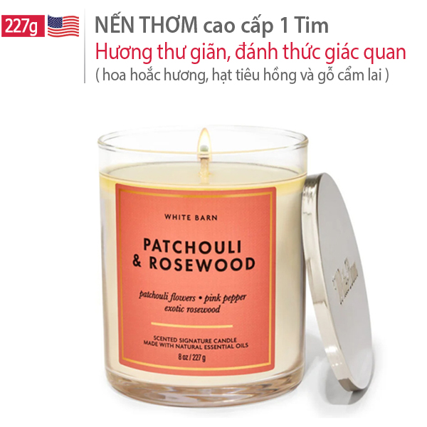 Nến Sáp Thơm Phòng Patchouli & Rosewood cao cấp - Bath & Body Works là một tiệm bào chế thuốc cổ điển, có hương hoa và hương gỗ pha chút gia vị. Hương thơm: hoa hoắc hương, hạt tiêu hồng và gỗ cẩm lai kỳ lạ đánh thức nguồn năng lượng, thư giãn tâm trí