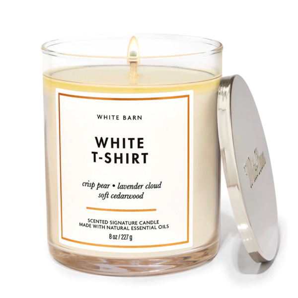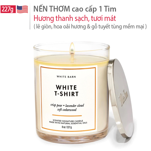 Nến Sáp Thơm Phòng White T-Shirt cao cấp - Bath & Body Works có hương vải thươm thanh khiết, sạch sẽ, thư giãn, dễ chịu của quả lê giòn, đám mây hoa oải hương và gỗ đàn hương mềm mại.