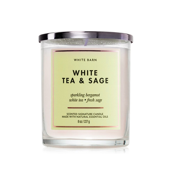 - White Tea & Sage: Hương thơm thư giãn của trà trắng, cam bergamot lấp lánh và cây xô thơm tươi.