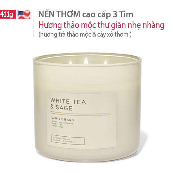 Nến Thơm 3 tim cao cấp White Tea & Sage - Bath & Body Works 411g