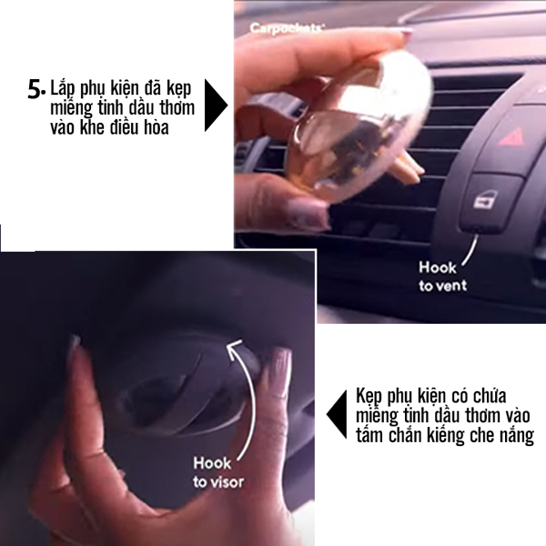 Để túi tinh dầu vào bên trong dụng cụ kẹp đựng tinh dầu (kẹp của chính hãng luôn, shop cũng có bán he). Kẹp dụng cụ kẹp đựng tinh dầu vào khe gió hay gương xe trong ô tô của bạn, sau đó thoải mái relax tinh thần và trí não…