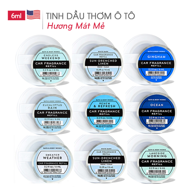 Tinh dầu nước hoa Nước hoa tinh dầu khử mùi làm thơm xe hơi ô tô Bath & Body Works an toàn và tiện lợi với nhiều mùi hương sang trọng, mát mẻ, thư giãn, vui vẻ, lạc quan, ngọt ngào, đáng yêu sẽ làm cho chiếc xe của bạn luôn luôn thơm mát, sạch sẽ.