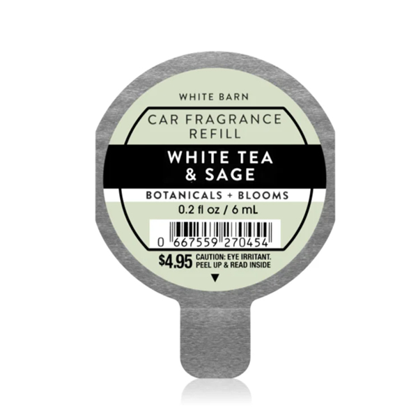 Nước Hoa Tinh Dầu Khử Mùi Làm Thơm Xe Hơi Ô tô White Tea & Sage - Bath & Body Works an toàn và tiện lợi với hương thơm nhẹ nhàng, làm dịu thư giãn trí não của trà & xô thơm.