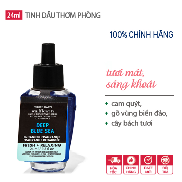 Tinh dầu xông phòng của Bath Body Works Deep Blue Sea được sản xuất hoàn toàn từ nguyên liêu thiên nhiên nên có lợi cho sức khỏe, tạo cảm giác thư giãn, thoải mái trong mọi không gian xung quanh bạn.