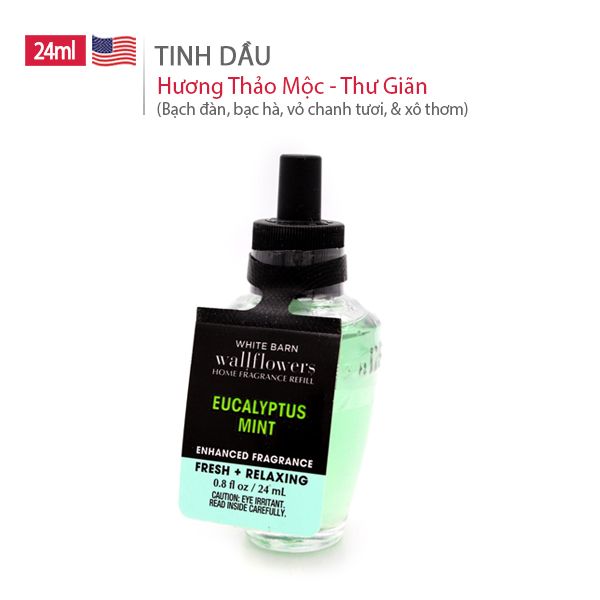 Tinh dầu xông phòng của Bath Body Works - Eucalyptus Mint mang đến cảm giác sảng khoái, thư giãn tinh thần từ hương thơm bạch đàn, bạc hà ngọt ngào, vỏ chanh tươi & cây xô thơm.