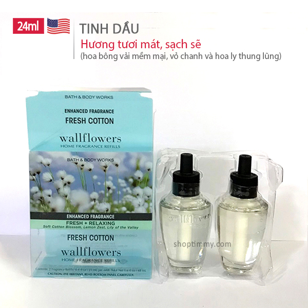 Tinh dầu xông phòng của Bath Body Works Fresh Cotton hương hoa vải tươi mát sạch sẽ được sản xuất hoàn toàn từ nguyên liêu thiên nhiên nên có lợi cho sức khỏe, tạo cảm giác thư giãn, thoải mái trong mọi không gian xung quanh bạn.