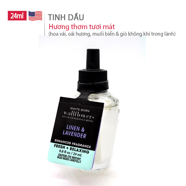 Tinh dầu xông phòng của Bath Body Works - Linen & Lavender sẽ mang đến hương thơm mát mẻ của hoa vải lanh giòn, muối biển, hoa oải hương và không khí gió trong lành. Hương thơm của những tấm khăn trải giường giặt sạch sẽ, được phơi khô trên cánh đồng hoa oải hương.