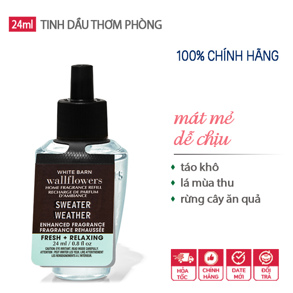 Tinh dầu xông phòng của Bath Body Works Sweater Weather được sản xuất hoàn toàn từ nguyên liêu thiên nhiên nên có lợi cho sức khỏe, tạo cảm giác thư giãn, thoải mái trong mọi không gian xung quanh bạn.