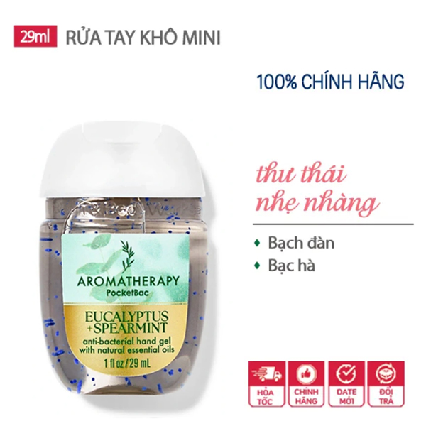 el rửa tay khô dưỡng ẩm diệt khuẩn mini hương bạc hà Eucalyptus Spearmint giảm stress - Bath & Body Works là dung dịch rửa tay không cần rửa lại với nước thật tiện dụng cho các bạn hay đi ra ngoài hoặc đi du lịch mà không mang theo khăn giấy, không có nước rửa tay, hoặc sau khi ăn hải sản…