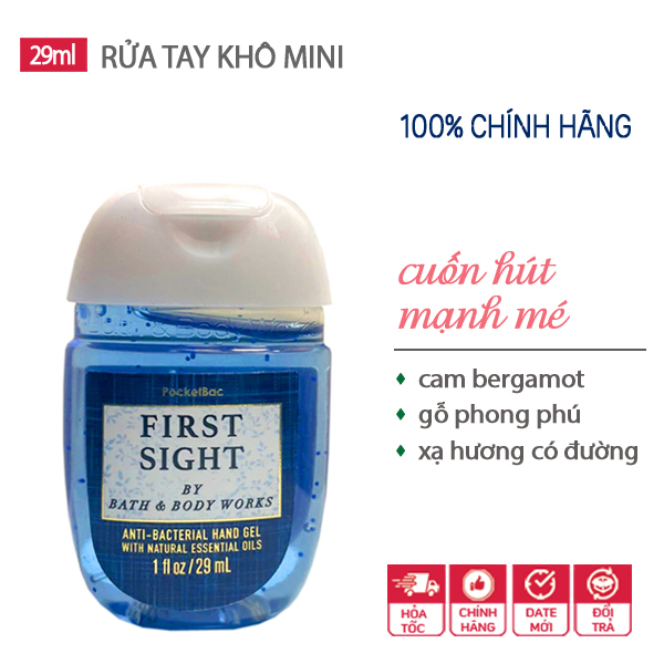 Gel rửa tay khô dưỡng ẩm diệt khuẩn mini dễ thương First Sight - Bath & Body Works là dung dịch rửa tay không cần rửa lại với nước thật tiện dụng cho các bạn hay đi ra ngoài hoặc đi du lịch mà không mang theo khăn giấy, không có nước rửa tay, hoặc sau khi ăn hải sản…