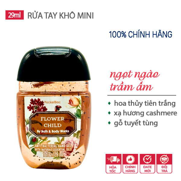 Gel rửa tay khô dưỡng ẩm diệt khuẩn mini Flower Child - Bath & Body Works là dung dịch rửa tay không cần rửa lại với nước thật tiện dụng cho các bạn hay đi ra ngoài hoặc đi du lịch mà không mang theo khăn giấy, không có nước rửa tay, hoặc sau khi ăn hải sản…
