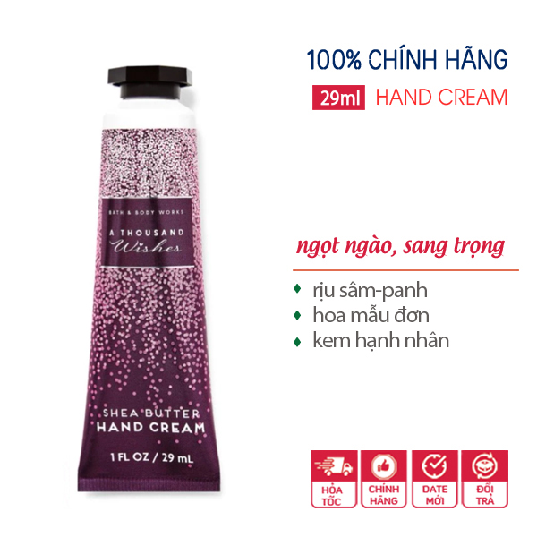 Kem dưỡng da tay A Thousand Wishes - Bath and Body Works lưu hương thơm ngọt ngào, cuốn hút của rượu sâm panh, hoa mẫu đơn, kem hạnh nhân