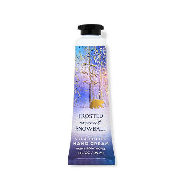 Kem dưỡng da tay vitamin E Frosted Coconut Snowball lưu hương dừa lạnh - Bath and Body Works chứa vitamine E, Bơ hạt mỡ, tinh dầu jojaba, Nha đam, Tinh dầu chiết suất từ trái cây nhiệt đới, Tinh dầu hoa cỏ. Không chứa các chất gây kích ứng da như cồn, paraben,...Fosted Coconut Snowball