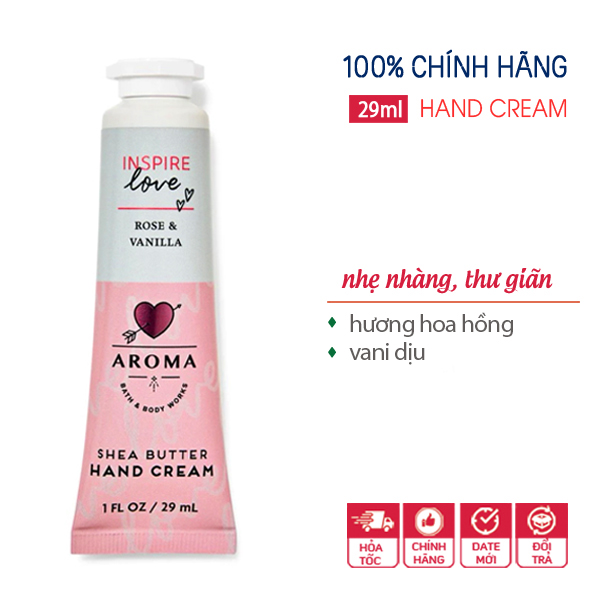 Kem dưỡng da tay Inspire Love Rose Vanilla - Bath and Body Works có hương hoa hồng & vani nhẹ nhàng, thư giãn tinh thần