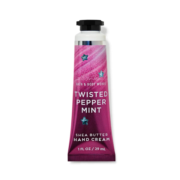 Kem dưỡng da tay vitamin E Twisted Pepper Mint hương thơm ngọt ngào - Bath and Body Works chứa vitamine E, Bơ hạt mỡ, tinh dầu jojaba, Nha đam, Tinh dầu chiết suất từ trái cây nhiệt đới, Tinh dầu hoa cỏ. Không chứa các chất gây kích ứng da như cồn, paraben,...