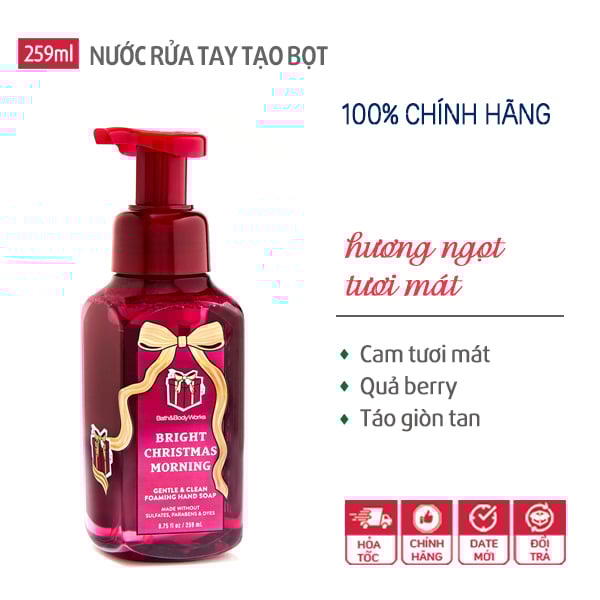 Nước xà phòng rửa tay tạo bọt Bright Christmas Morning - Bath and Body Works được đặc chế với công thức cải tiến vừa để làm sạch, diệt khuẩn mạnh mẽ và khử mùi hiệu quả. Hàng chính hãng từ Mỹ.