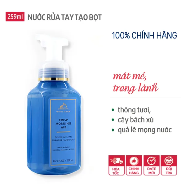 Nước xà phòng rửa tay tạo bọt Crisp Morning Air - Bath and Body Works được đặc chế với công thức cải tiến vừa để làm sạch, diệt khuẩn mạnh mẽ và khử mùi hiệu quả. Hàng chính hãng từ Mỹ.