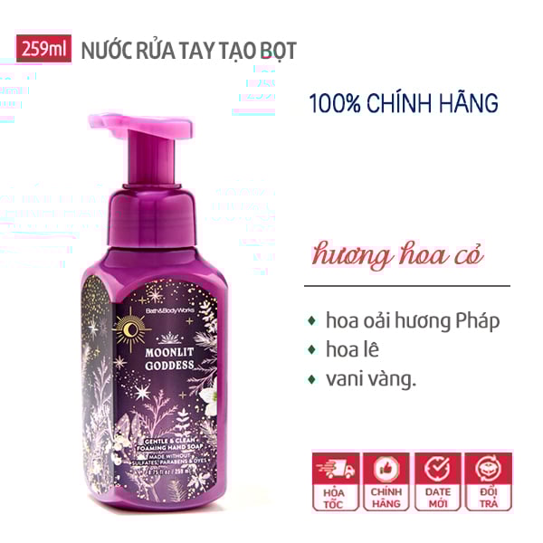 Nước xà phòng rửa tay tạo bọt Moonlit Goddess - Bath and Body Works được đặc chế với công thức cải tiến vừa để làm sạch, diệt khuẩn mạnh mẽ và khử mùi hiệu quả. Hàng chính hãng từ Mỹ.