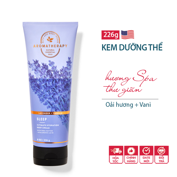 ** Mùi hương: Kem dưỡng thể hương Spa thư giãn Sleep Lavender Vanilla - Bath & Body Works chiết xuất mùi hương từ tinh dầu Oải hương kết hợp hương Vani tối đa giúp làm dịu cảm giác căng thẳng giúp bạn có giấc ngủ ngon hơn.