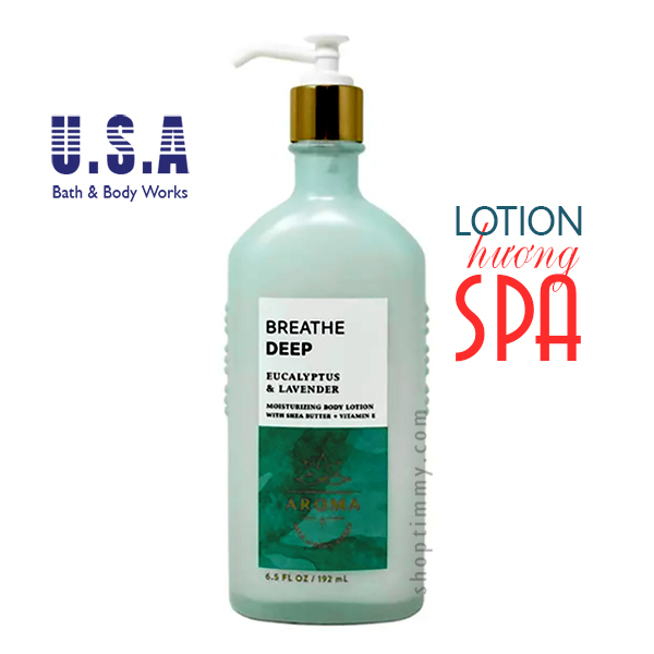 ** Mùi hương: Sữa dưỡng thể thư giãn Breathe Deep có hương thơm đã được pha trộn từ hoa Oải hương, Bạch đàn