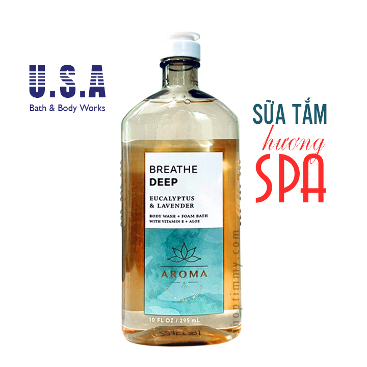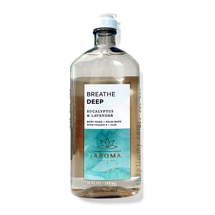 Sữa tắm hương spa thư giãn tinh Khuynh diệp Oải hương Breathe Deep Aroma - Bath & Body Works là một hỗn hợp hương liệu của tinh dầu & các thành phần tự nhiên có lợi cho cơ thể, tâm trạng & trí não chứa dưỡng chất chiết xuất từ lô hội & tre nhẹ nhàng làm sạch da, mền mịn da & không bị khô da. Với liệu pháp chiết xuất từ các loại tinh dầu cũng như các loại hoa sẽ giúp làm dịu tinh thần và ngủ ngon, mùi thơm nhẹ nhàng mang lại cảm giác cực kỳ dễ chịu.