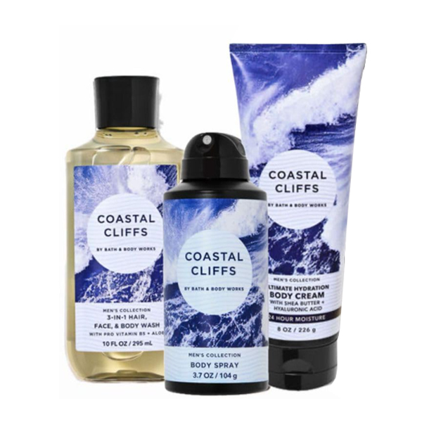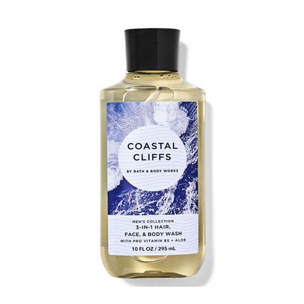 ++ Sữa tắm, gội đầu, rửa mặt 3 in 1 cho nam giới Coastal Cliffs - Bath and Body Works có hương thơm của một bầu không khí sảng khoái, thư thái của nước khoáng có ga, hoa oải hương ven biển và xạ hương trắng.