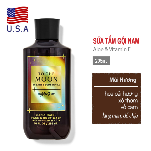 Sữa tắm gội nam To The Moon - Bath and Body Works tiện lợi cho nam vì chức năng 3 trong 1 – vừa tắm toàn thân và gội sạch và thơm mát mái tóc.
