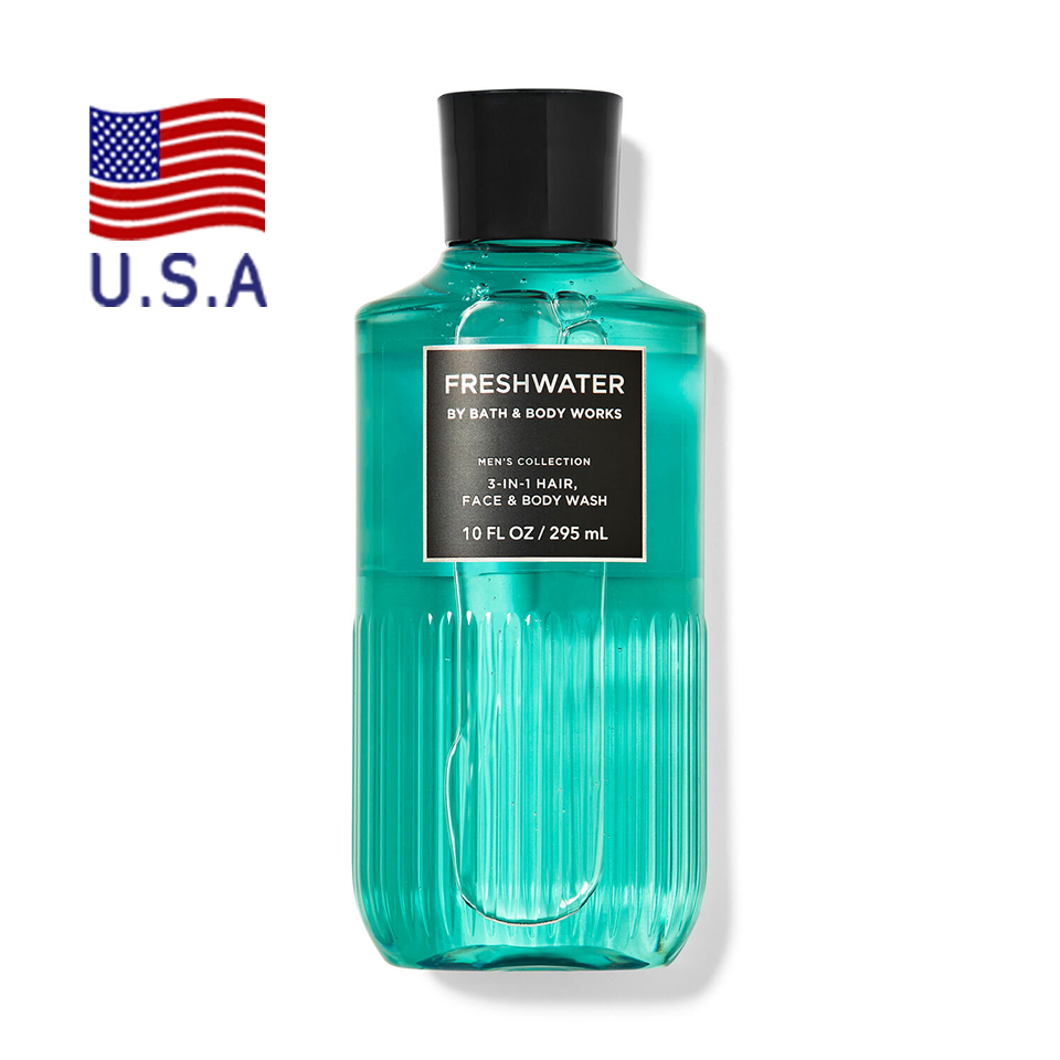 * Mùi hương: Sữa tắm gội nam Freshwater - Bath and Body Works giúp bạn cảm thấy sảng khoái với hương thơm của một chút nước cam bergamot, nước suối trên núi và gỗ sồi.