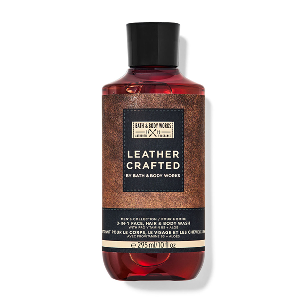 ++ Sữa tắm, gội đầu, rửa mặt 3 in 1 cho nam giới Leather Crafted - Bath and Body Works có hương thơm của một thư viện chứa đầy sách cổ điển & bìa da. thành phần hương của lá thuốc lá, táo nghiền và da thuộc cổ điển.